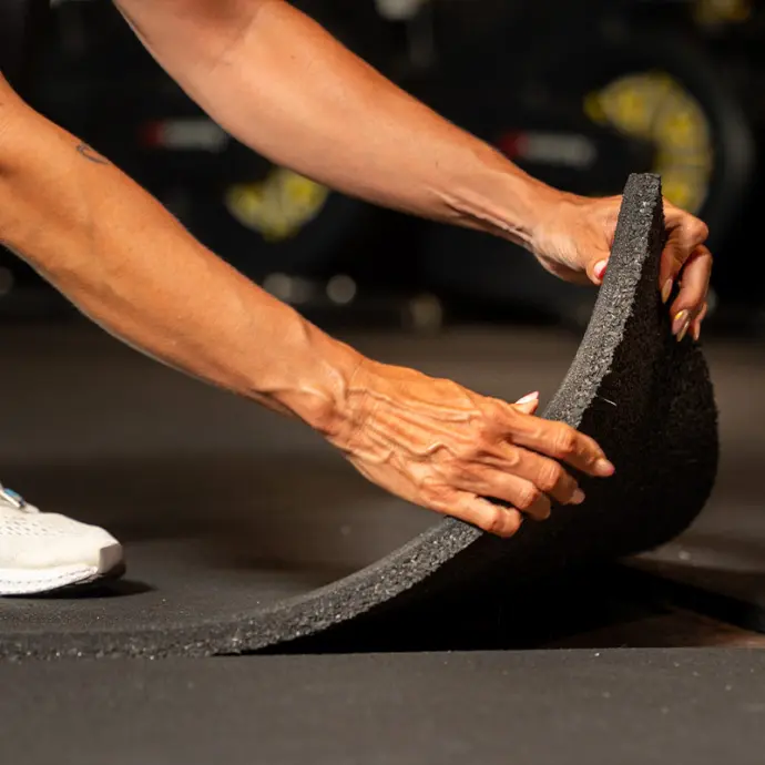 “Instalamos Gravik Base en la zona de peso libre y funcional. El acabado liso con interlocking nos ha ahorrado tiempo de limpieza y el desgaste es mínimo. Menos ruido y mejor agarre.”